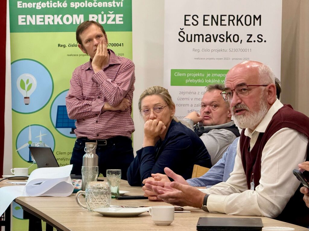 Na setkání dorazili i zástupci energetických společenství z celé České republiky – ENERKOMy Slovácko, Krnovsko, Podlipansko, Šumavsko, Opavsko nebo Družstvo Hotař z jihu Moravy. Probírali jsme různé způsoby fungování komunit, jakou podporu nyní společenství potřebují a jak správně doložit veškeré přílohy k dotaci na zakládání energetických společenství.